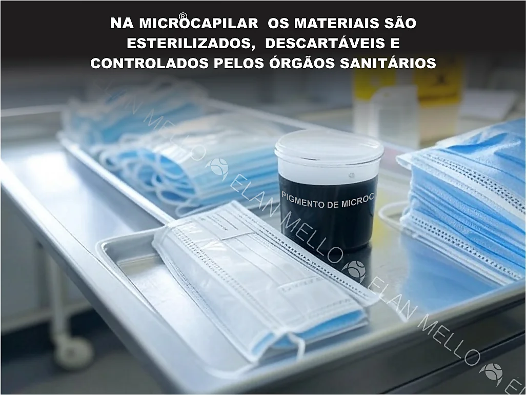 As agulhas e pigmentos não são esterilizados na clínica. Eles chegam esterilizados diretamente da fábrica: pigmentos por raio gama e agulhas por óxido de etileno. São lacrados, com certificado da ANVISA, data de validade e são abertos e descartados na presença do cliente. Seguimos rigorosamente os protocolos exigidos pela Agência de Vigilância Sanitária, além de práticas adicionais que identificamos na experiência clínica como essenciais. O cliente acompanha cada etapa. Todo o material é de uso único e descartável – nunca é reesterilizado para reutilização.